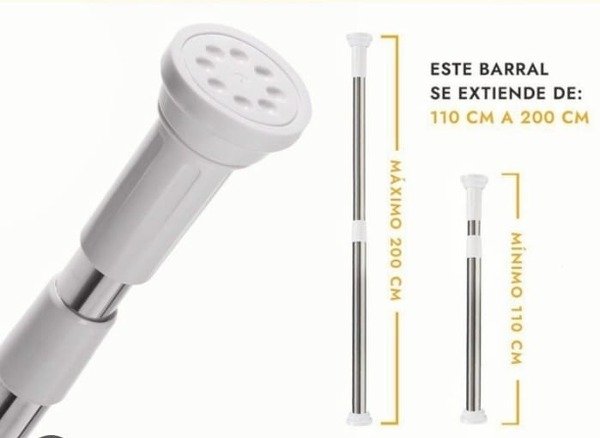 Barral para cortina de baño extensible de1,10cm a 2m.