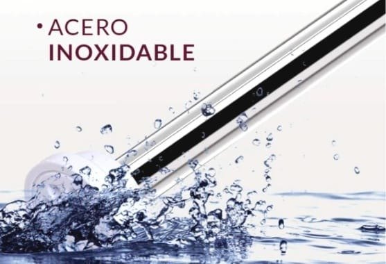 De acero inoxidable con su extremo en PVC blanco al igual que sus sopapas.