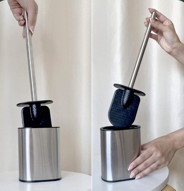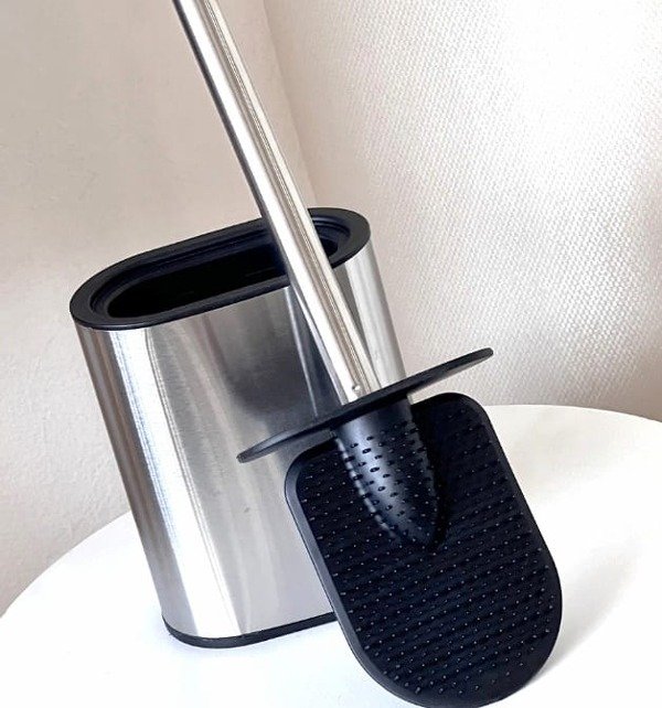 Con cepillo de silicona que gracias a la flexibidad y forma del cabezal del cepillo, se puede limpiar el inodoro en zonas a las que antes no podías llegar.