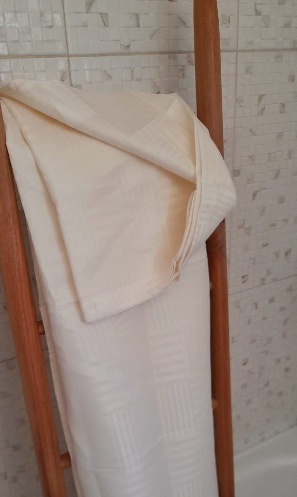 Cortina de baño, línea hotelera, en tela polyester con tratamiento anti-mancha.