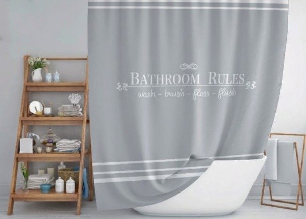 Cortina en tela de fibras naturales con tratamiento antimanchas.