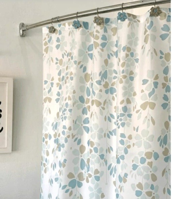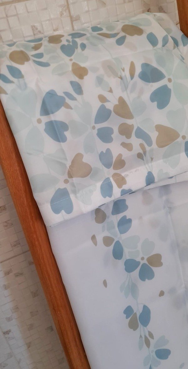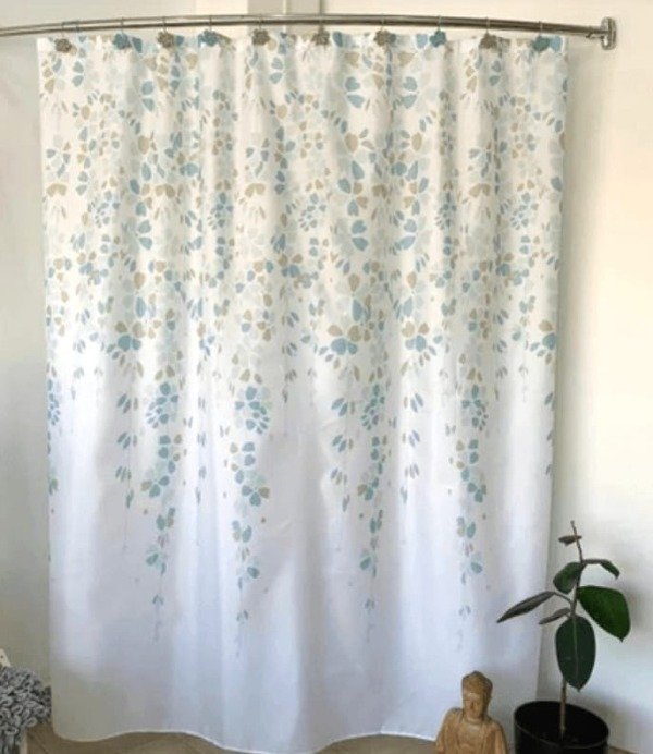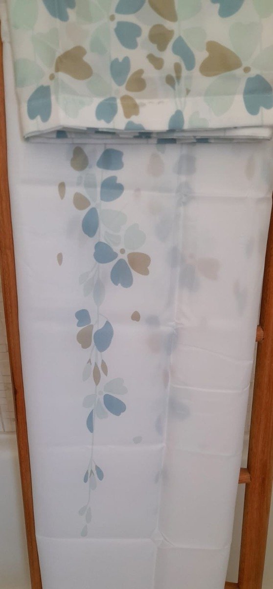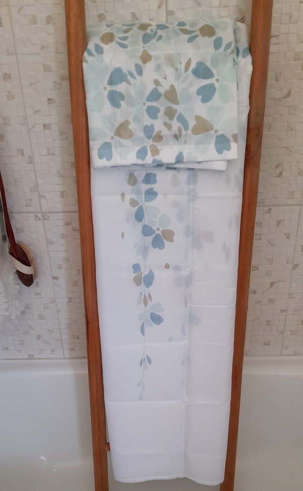 Cortina de baño línea estampada en tela con tratamiento anti mancha.