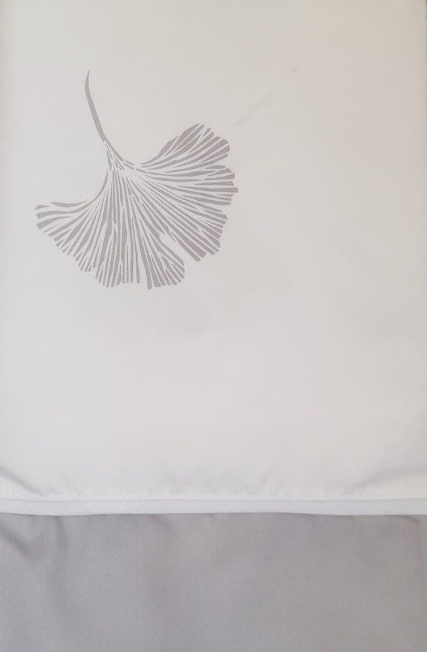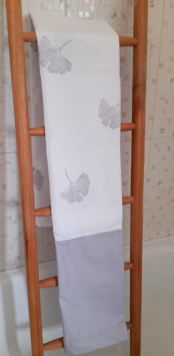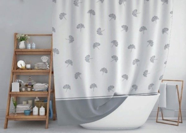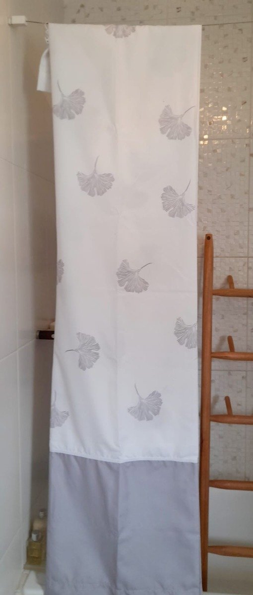 Cortina de baño en tela de fibras naturales con tratamiento antimanchas.