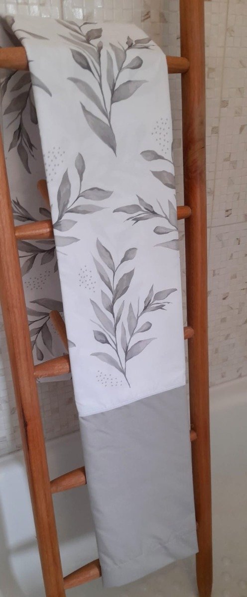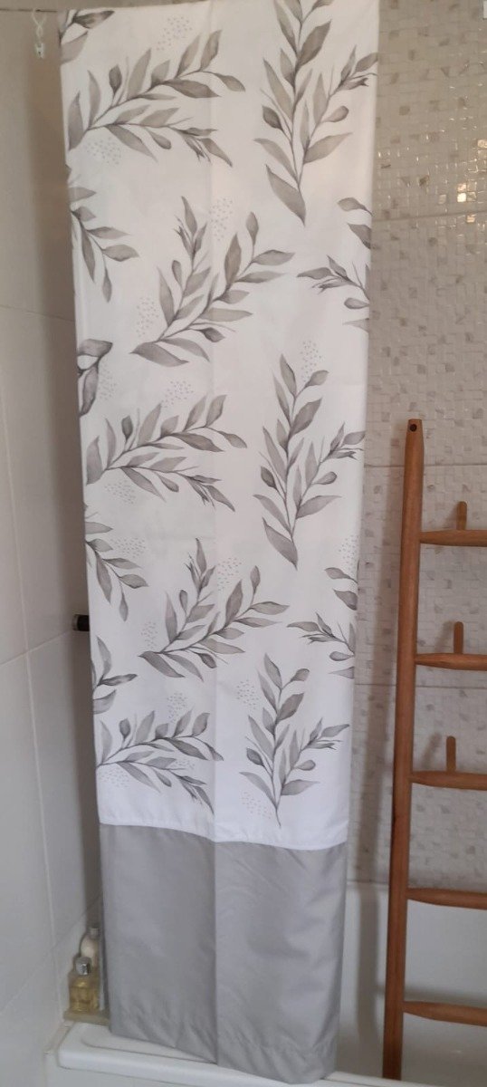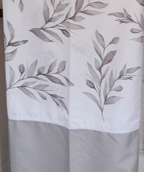 Cortina en tela de fibras naturales con tratamiento antimanchas.