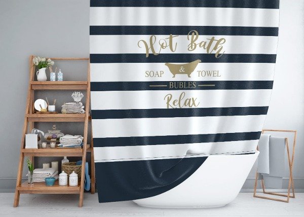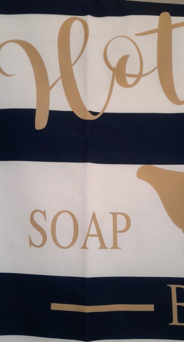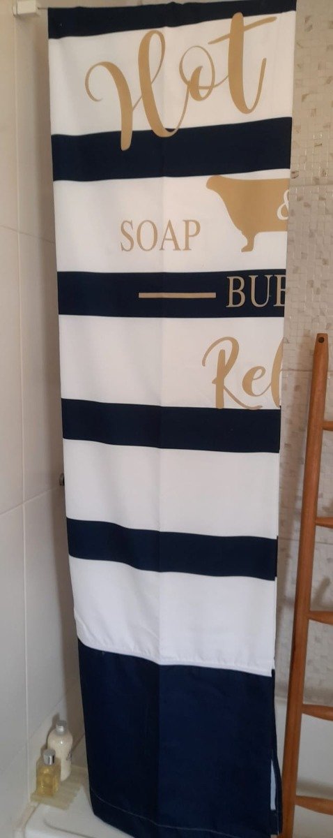 Cortina de baño en tela de fibras naturales con tratamiento antimanchas.