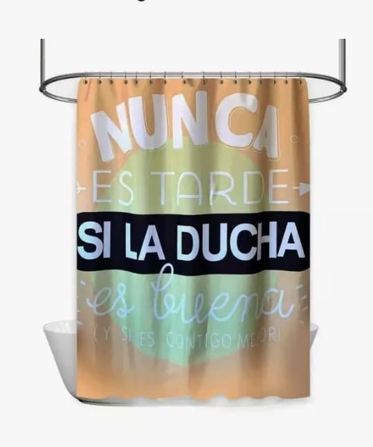 Cortina de baño en tela estampada con tratamiento antimancha.