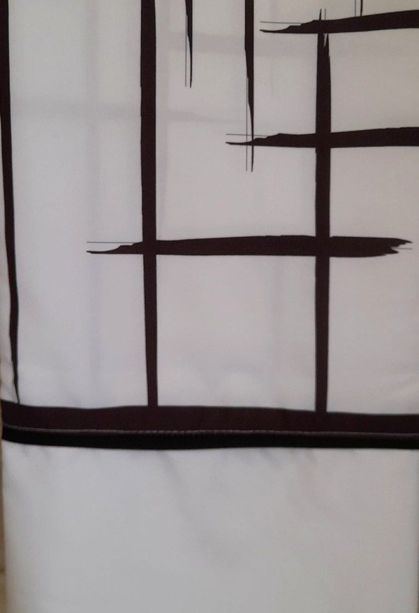 Cortina de tela en fibras naturales con tratamiento antimanchas.