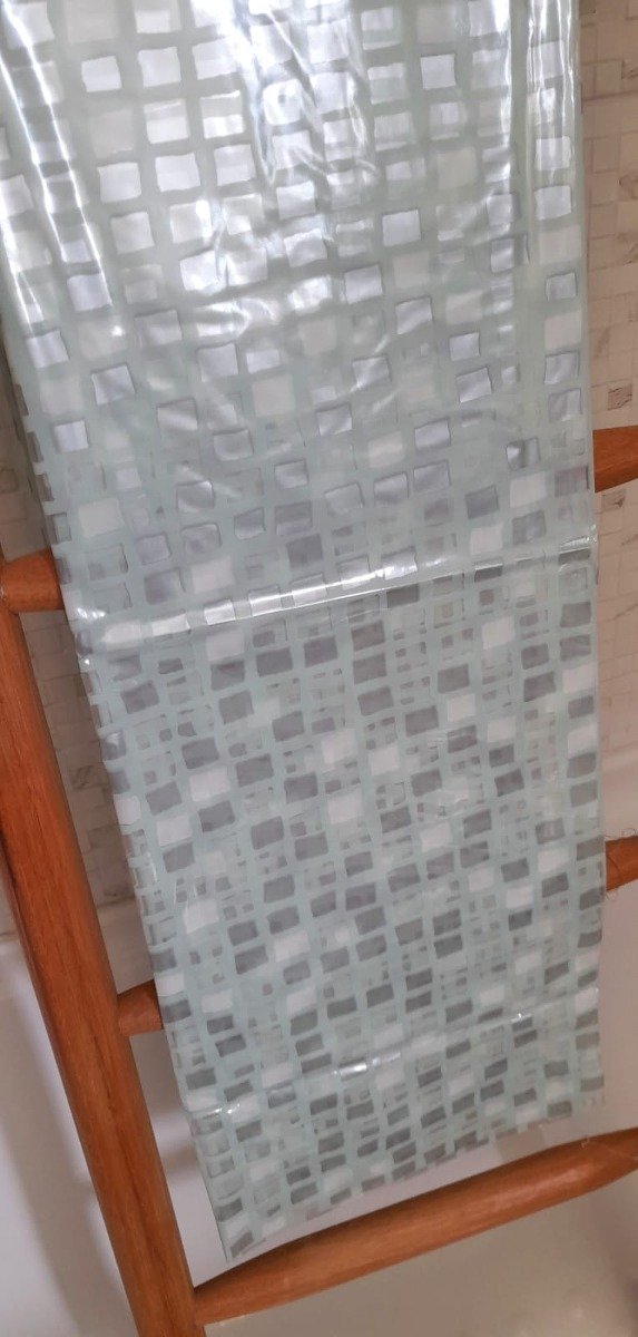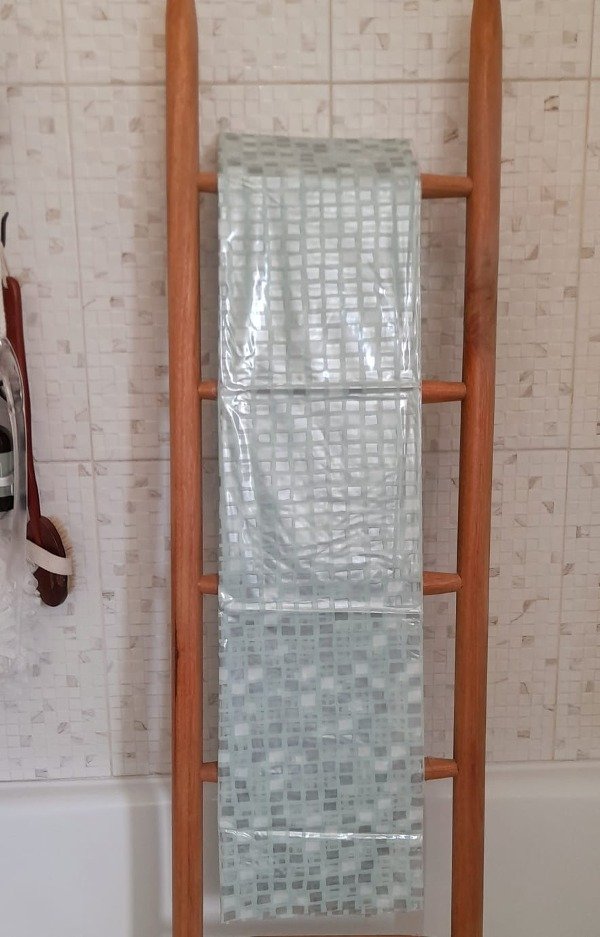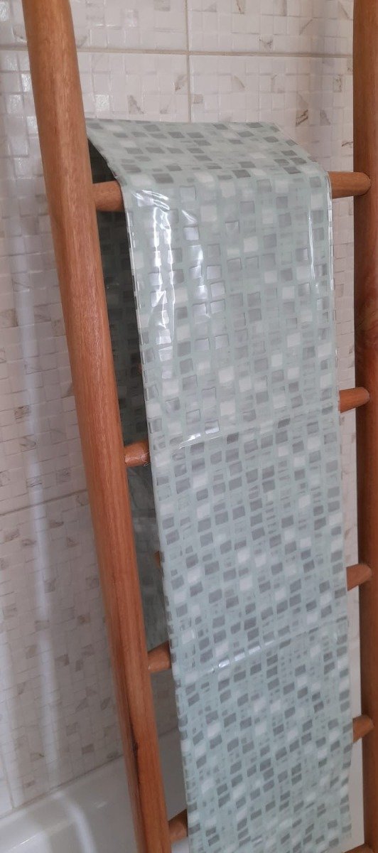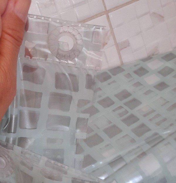 Diseño en venecitas verde agua, gris plateado y transparente.