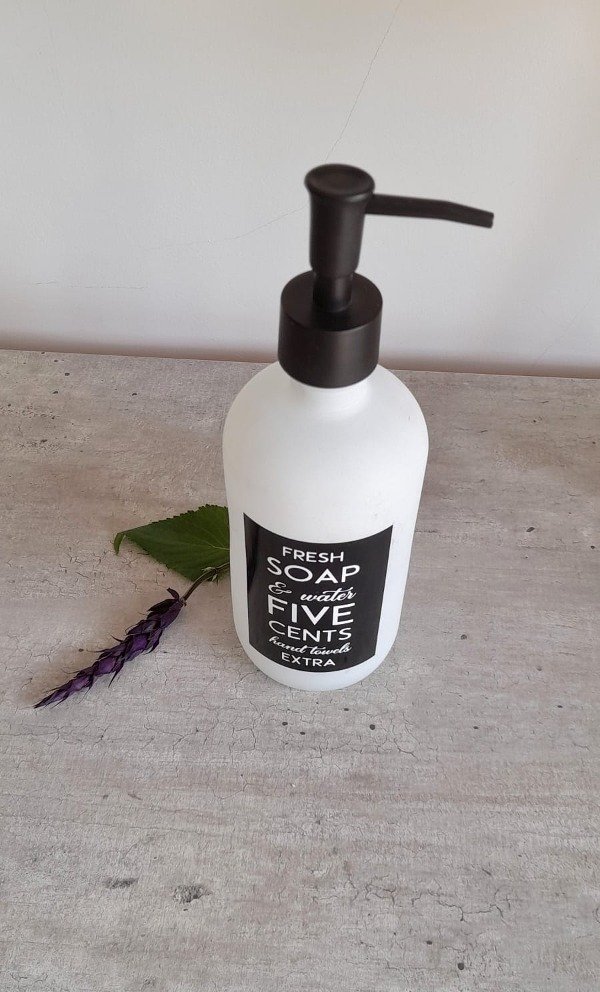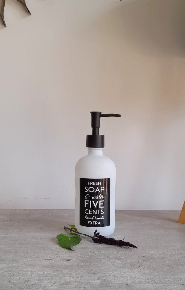 Dispenser en vidrio esmerilado en color blanco.