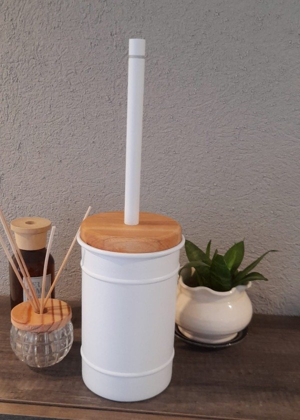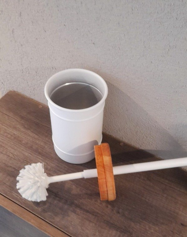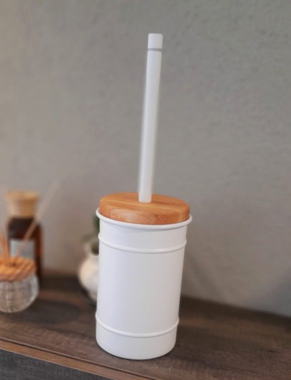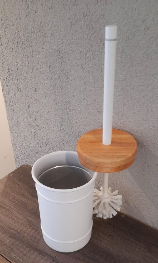 Escobilla de baño en aluminio enlozada en blanco mate.
