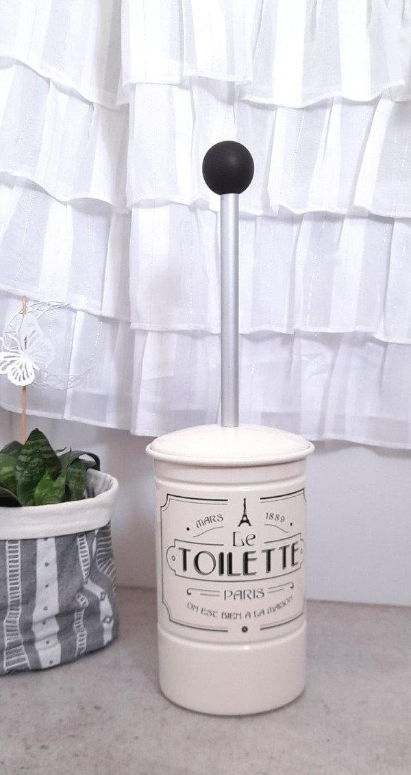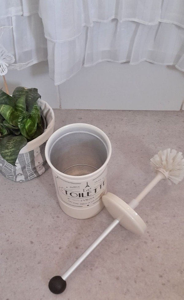 Escobilla limpia inodoro integramente en aluminio enlozado en blanco.