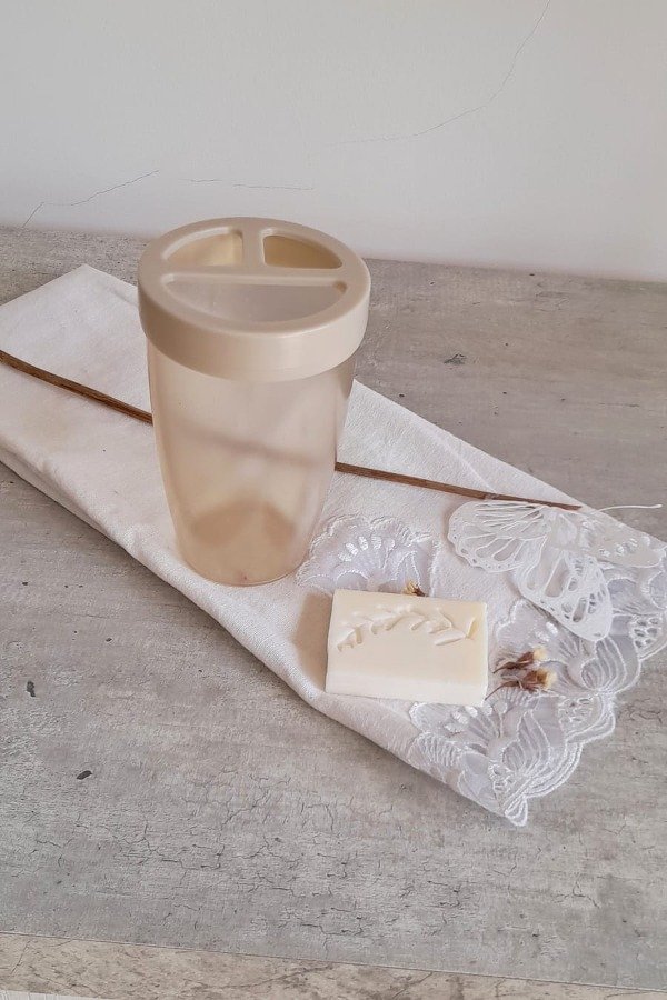 Porta cepillo con división para 2 cepillos y 1 pasta dental.