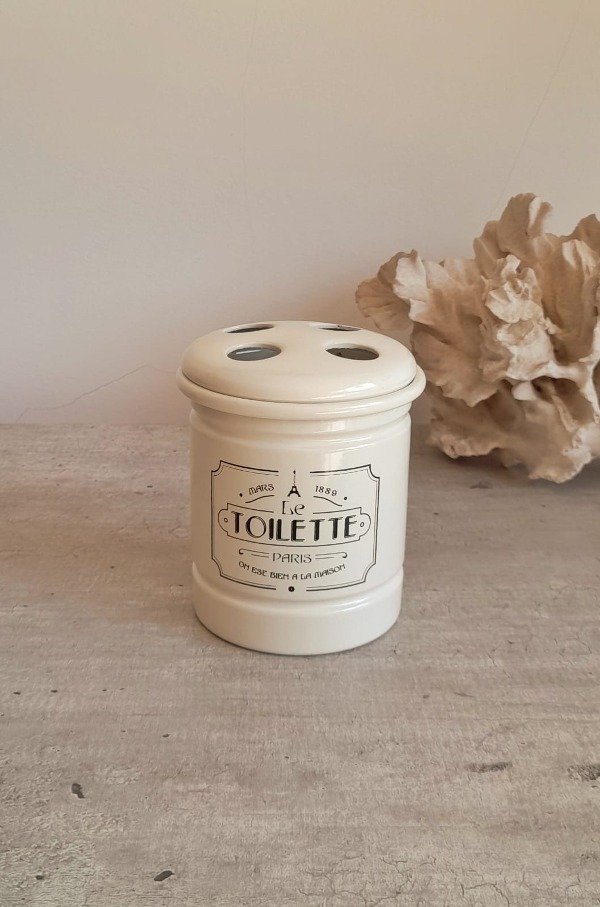 Porta cepillos en alumnio enlozado en blanco opaco.