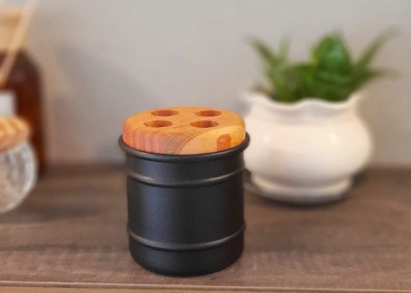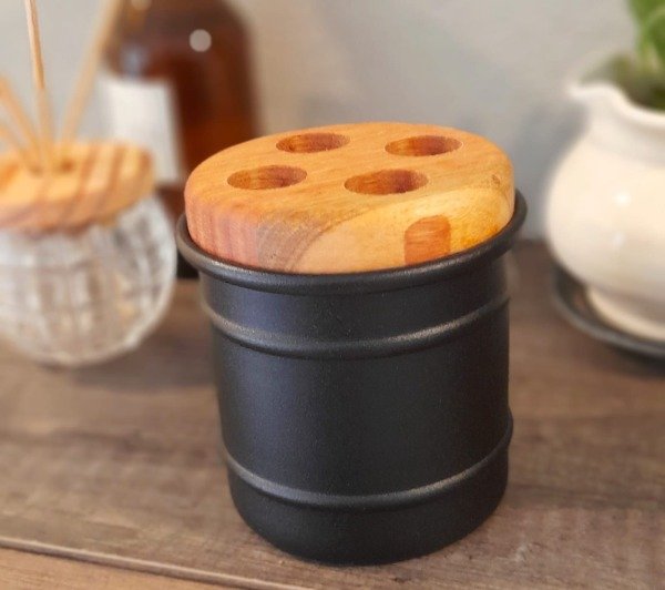 Contiene base de madera Paraíso con 4 divisiones para cepillo de diente.