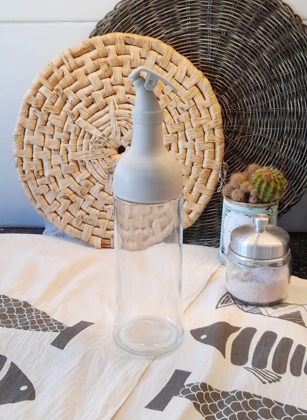 Consta de pico vertedor con tapa protectora todo realizado en pet macizo inalterable color visón.
