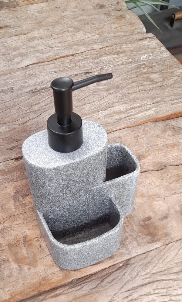 Dispenser para detergente con 2 compartimientos para varias esponjas y cepillo limpiador de ollas.