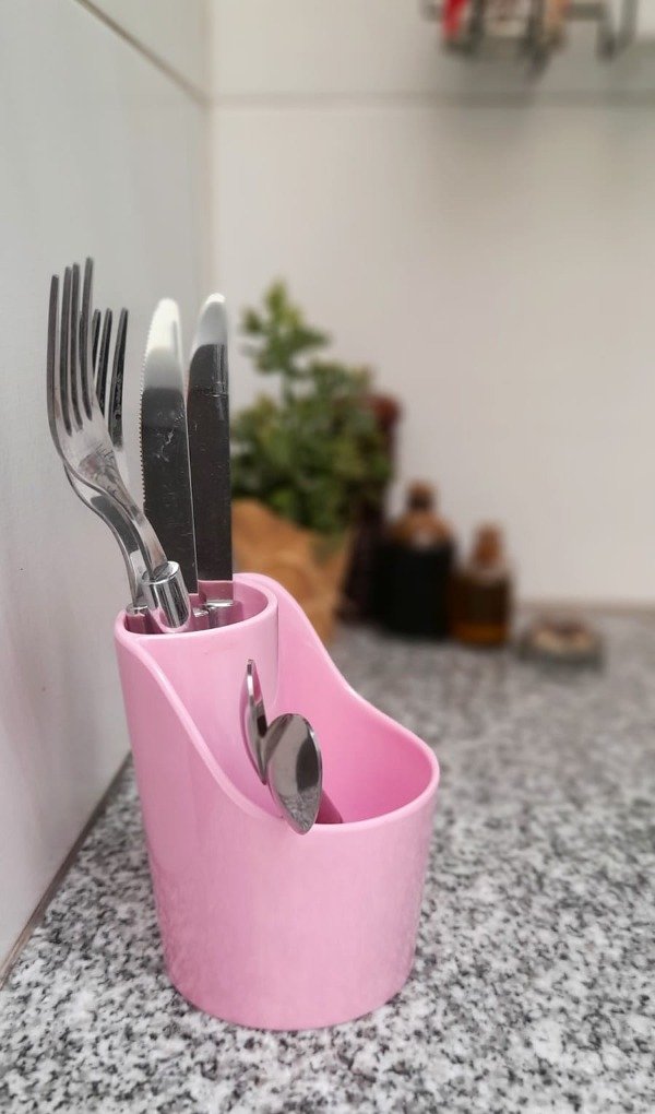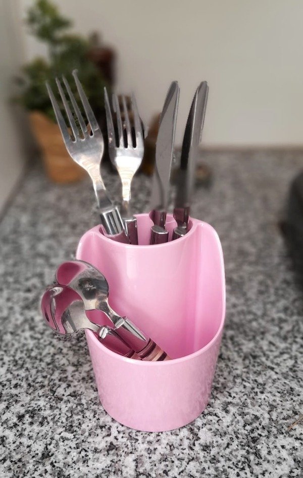 En melamina maciza con 2 divisiones y decantador en ambos compartimientos.