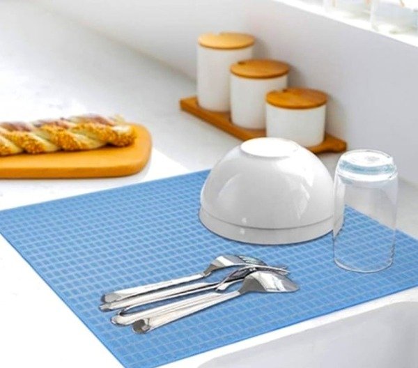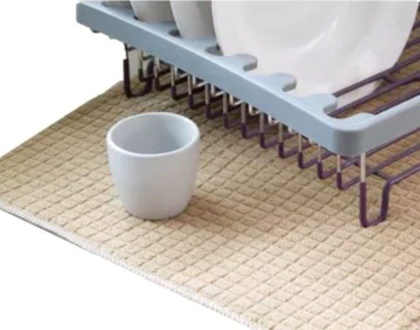 Podes usarlo desplegado sobre la misma para escurrir platos, tazas, vasos, utensillos o como base de tu secaplatos.
